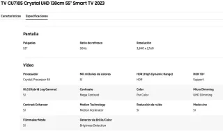 Televisor Samsung de 55 pulgadas con tecnología Crystal UHD. - Modelo 2023. - Diseño elegante en color negro. - Mando a distancia incluido.