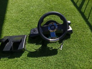 Volante de conducción Drive Pro V16 con pedales. - Volante con agarre texturizado. - Palanca de cambios. -Viene con levas. -Viene con los pedales. -Apto para Nintendo Switch, play 4, para pc,etc.