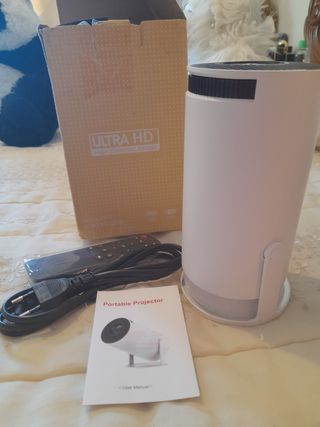 Proyector HY508PRO en color gris, sin estrenar y en perfecto estado. Incluye mando a distancia y cable de alimentación. - Mando a distancia incluido. - Cable de alimentación incluido. - Guía de instalación rápida incluida.