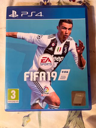 Videojuego FIFA 19 para PlayStation 4. - Cubierta con Cristiano Ronaldo. - Incluye logo de EA Sports. - Clasificación PEGI 3. - Todo en perfecto estado sin ningún rasguño