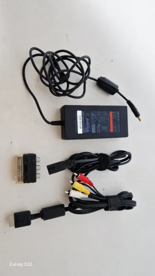 Lote de accesorios para PlayStation 2 Slim. Funciona bien - Adaptador de corriente Sony. - Cable AV con conectores RCA (rojo, blanco, amarillo). - Adaptador SCART.