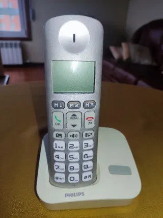 Teléfono inalámbrico con base de carga. - Diseño moderno en color plata y blanco. - Teclado numérico con teclas de acceso rápido.