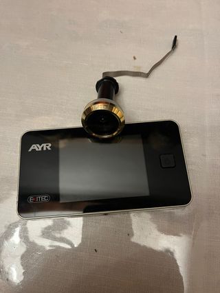 Mirilla electrónica digital de la marca AYR. - Diseño moderno y discreto. - Acabado en dorado y negro. Funciona con 2 pilas aaa