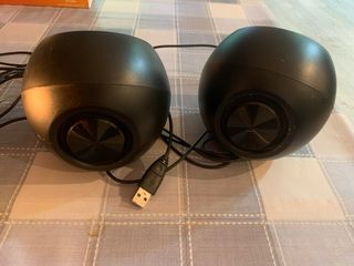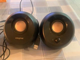 Altavoces compactos de la marca Creative. - Diseño esférico. - Acabado en color negro. - Conexión USB. - 4,4 W - Muy buen estado