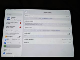 iPad Pro de 11 pulgadas en color plata. La batería tiene una capacidad máxima del 100% y ha completado 8 ciclos de carga. - Fecha de fabricación: Septiembre de 2025. - Primer uso: Diciembre de 2025. No tiene ningun rasguño!!! GENTE SERIA! Precio negociable