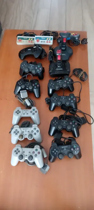 Lote de mandos para consolas. - Mandos de PlayStation 2. - Mandos de Sega Megadrive. - Mandos de Nintendo. Varios mandos para reparar ho piezas diferentes fallos podría funcionar alguno pero no lo aseguro no acepto devoluciones