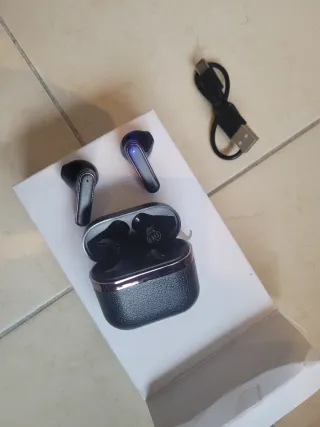 Auriculares inalámbricos con estuche de carga. - Diseño moderno y compacto. - Incluye cable de carga USB. - Indicador LED de carga.