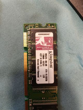 DOS Módulos de memoria RAM Kingston 256MB PC133 (total 512MB) Ideal para retrocomputing y FPGAs antiguas. - Modelo: KTH-VL133/256 - Capacidad: 256MB - Velocidad: PC133 133MHz - Voltaje: 3.3V - Fabricado en China.