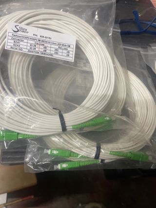 Lote de cables de fibra óptica de 15 metros de longitud. 4x 15 -- 4x10-- regalo latigillos. - Conectores SC/APC. - Cableado LSZH blanco. - Modelo G657A2 SX 3.0mm.