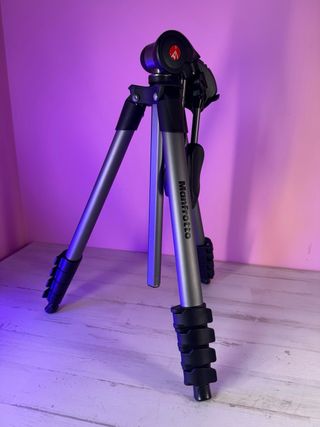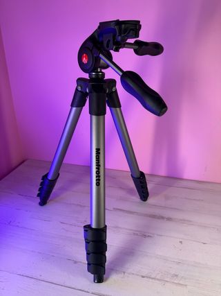 Trípode de la marca Manfrotto, ideal para fotografía y video. - Construcción robusta y duradera. - Patas ajustables para mayor estabilidad. - Cabezal versátil para diferentes ángulos.