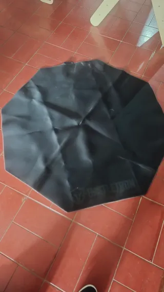 Alfombra de gaming de color negro, diseñada para colocar debajo de la silla. - Forma octogonal. - Logo de la marca visible en la parte superior.