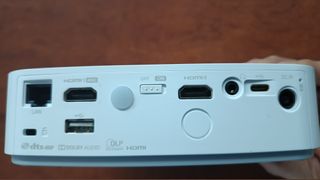 Está en perfecto estado. Se puede ver sin compromiso. NO NEGOCIABLE, solo 199€ - Nativo 1920 X 1080 FullHD, DLP - Tamaño pequeño: 17x17x4,9 cm - Tecnología LED RGB (más de 20 años de vida útil) (30.000 horas). Usado solo 500 horas. - Tiene batería integrada para uso sin cables (para ver una peli entera no da, fotos menos consumo - 700 gramos. - SmartTV webOS (cable internet RJ45 o Wifi) - 600 lúmenes ANSI, da pantalla hasta 150", pero la óptima es 100". - Contraste 100,000:1 - Sonido Stereo, y Salida de audio minijacky Bluetooth - Corrección digital Keystone vertical - MiraCast compartir pantalla - HDMI ARC - Host USB