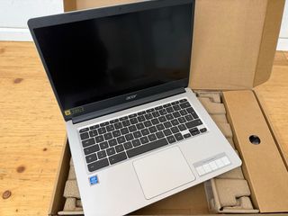 Portátil Acer Chromebook 314 en color plata. Diseñado para la portabilidad y el uso diario. - Pantalla de 14 pulgadas. - Teclado QWERTY en español. - Diseño ligero y compacto.