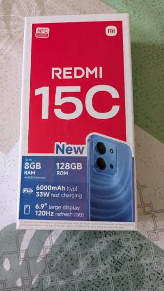 Teléfono móvil Xiaomi Redmi 15C con gran capacidad de almacenamiento y memoria RAM. - Exactamente no sé el color que tiene porque no he abierto la caja. Se encuentra precintado. - 128GB de almacenamiento interno. - 8GB de memoria RAM (4GB + 4GB de extensión). - Batería de 6000mAh (típica). - Carga rápida de 33W. - Pantalla grande de 6.9 con tasa de refresco de 120Hz. - Soporte NFC.
