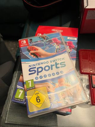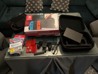 Consola Nintendo Switch de primera generación con varios accesorios. - Incluye la consola y sus Joy-Con. - Base de carga. - Funda de transporte. - Juego Nintendo Switch Sports. - Juego Nitendo Swtch super mario