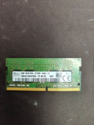 Módulo de memoria RAM SK hynix de 4GB DDR4. - Modelo: HMA451S6AFR8N-TF - Tipo: PC4-2133P - Velocidad: 2133MHz - Formato: DDR4 SODIMM Probada durante horas. Revisa la compatibilidad con tu equipo antes de comprar.
