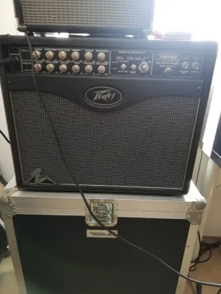 Combo Made in USA impecable. Siempre en su flightcase sin un rasguño. 40 watios todo válvulas con un canal Clean/Crunch con 3-band EQ y otro canal Ultra Gain con 5-band EQ, cada uno con sus reverbs independientes. Pedal programable con Booster y 9 efectos: delay, rotary speaker, chorus, flanger,... Monta un altavoz Sheffield USA de 12" con regulador de rigidez , 3 válvulas de preamp 12AX7, 2 válvulas de potencia EL34 y una rectificadora que le permite usar también válvulas 6L6GC . Limpios cristalinos, crunch con garra y un canal hi-gain increíble. Precio sin case: 500€ Precio con case: 600€