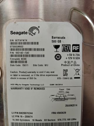 Disco duro interno SEAGATE Barracuda de 500 GB. - Capacidad: 500 GB - Interfaz: SATA - Modelo: ST500DM002 Testeado con CRYSTALDISK. Adjunto Test Ok Se envía limpio de información.