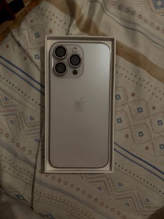 iPhone 14 Pro Max en color blanco con 128GB de almacenamiento. - Pantalla Super Retina XDR. - Chip A16 Bionic. - Sistema de cámaras Pro avanzado. - Parte trasera de vidrio texturizado mate y diseño de acero inoxidable.
