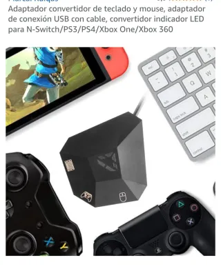 Convierte tu teclado y mouse en mandos para tus consolas favoritas. Este adaptador es compatible con múltiples plataformas y cuenta con indicador LED. - Compatible con Nintendo Switch, PS3, PS4, Xbox One y Xbox 360. - Conexión USB con cable incluido. - Diseño compacto y moderno.