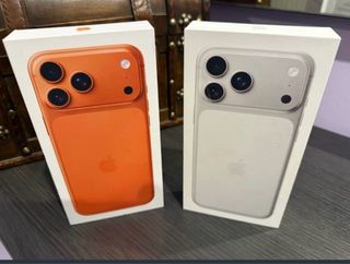 Teléfono móvil iPhone 17 Pro Max con 256GB de almacenamiento. - Color naranja. - Color plateado.