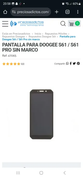 Pantalla de repuesto para Doogee S61 y S61 Pro. - Modelo: Pantalla para Doogee S61 / S61 Pro sin marco. - Referencia: 47065.