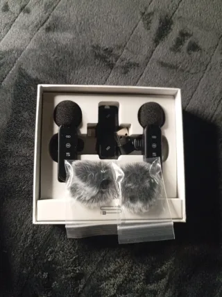 Set de micrófonos inalámbricos en color negro. Incluye dos micrófonos y un receptor. - Diseño compacto. - Incluye accesorios para los micrófonos.