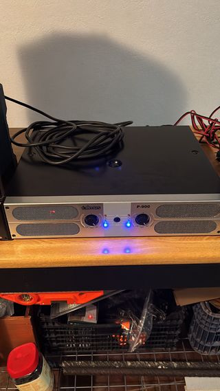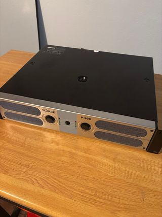 Etapa de potencia TALMUS P900 en color negro y plateado. Ideal para sonido profesional. Es nueva, conectada para comprobarla - Diseño robusto y elegante. - Indicadores LED de estado. - Potencia 2x450W RMS A 4Ohms Y 2x300W RMS 8Ohms