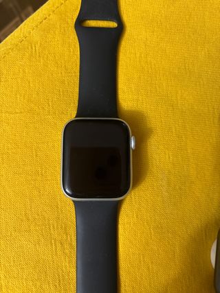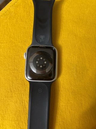 Reloj inteligente Apple Watch Series 6 con caja de 44mm. Sin arañazos ni golpes. En perfecto estado. Funciona todo. Con cable y caja . Sin cargador. - Color de la caja: plateado. - Color de la correa: negro.