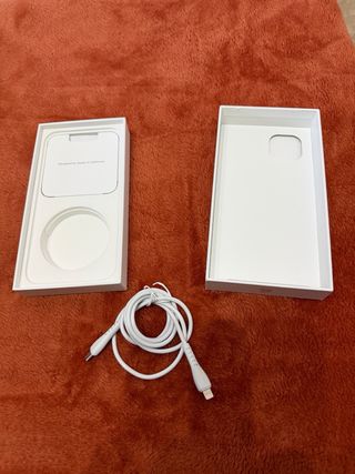 Incluye la caja original de un iPhone 14 Plus y un cable Lightning. - Caja con compartimentos para accesorios. - Cable Lightning blanco.