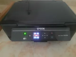 Impresora multifunción Epson Stylus SX435W en color negro. Cartuchos T1285 a mitad de uso. El problema que tiene es que no imprime a pesar que los cartuchos tienen tinta, por eso se vende como AVERIADA para reparar o para piezas, rota. Puerto para tarjeta SD - Conectividad Wi-Fi. - Pantalla a color. - Función de copiado, escaner...