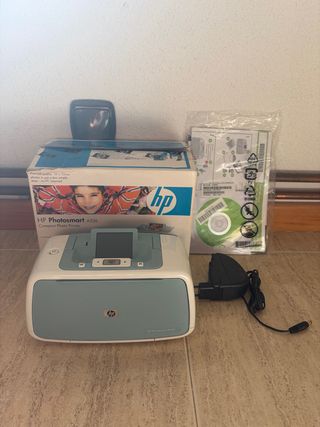 Impresora fotográfica compacta HP Photosmart A526. - Ideal para imprimir fotos de 10x15 cm. - Diseño en blanco y azul claro. - Incluye CD de software y adaptador de corriente. - En perfecto estado Precio negociable
