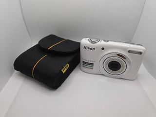 Cámara digital compacta Nikon Coolpix en color blanco. Incluye funda protectora. - Zoom óptico 5x. - Pantalla LCD de 7.5cm (3.0 pulgadas). - Funciona con pilas AA.