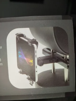 Soporte para tablet diseñado para el asiento del coche. Permite fijar el dispositivo en el reposacabezas. Solo es el soporte. No viene tablet. - Compatible con tablets y smartphones. - Ajustable para diferentes tamaños de pantalla. - Montaje sencillo en el reposacabezas.