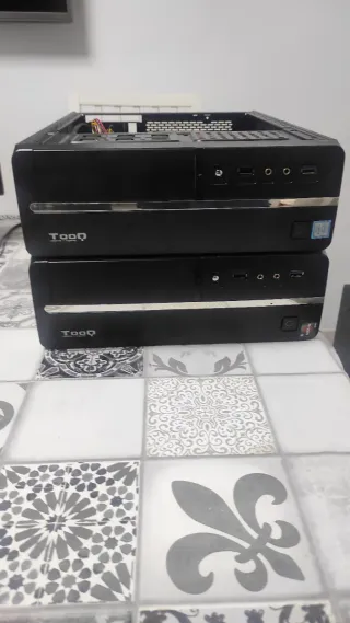 Ordenador de sobremesa Toqq en color negro, ideal para tareas de ofimática. Este equipo no incluye disco duro. - Diseño compacto. - Puertos frontales para fácil acceso. Supongo de varios todos parecidos mismo díselo sin disco duro. Intel core I3 7100 65 -50 Intel g4400 8gb de RAM Funrte de alimentación Placa base Lector de cd USB delanteros Puertos y conexión delantera se puede colocar el monitor encima y usar de lado. Caja completa solo colocar disco duro y usar. Pc gamer , Minecraft, roblox oficina, trabajo. Unidad sin disco duro comprando más de Solo una unidad 65