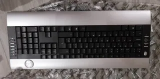 Teclado inalámbrico con un diseño moderno y elegante. - Combinación de colores negro y plateado. - Diseño ergonómico para mayor comodidad.