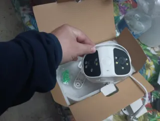Cámara de vigilancia con un diseño moderno y compacto. - Color blanco. - Dos lentes frontales. - Incluye accesorios de montaje.
