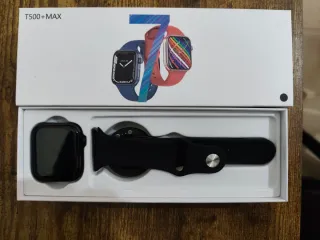 Smartwatch T500+Max con un diseño moderno y elegante. Nunca ha sido utilizado. - Pantalla nítida y brillante. - Correa cómoda para uso diario. - Diseño ligero y ergonómico.