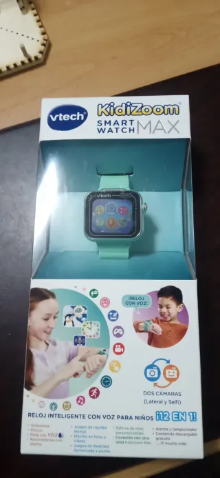 Reloj inteligente VTech Kidizoom MAX en color verde aguamarina. - Doble cámara de fotos y vídeos. - Juegos interactivos. - Pantalla táctil horizontal. - Versión en español.