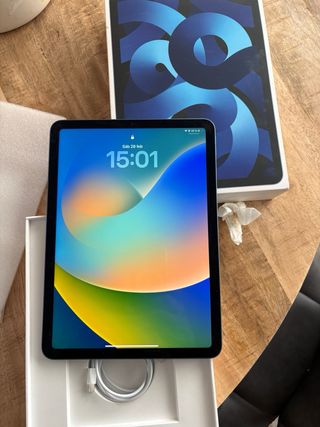 iPad Air de 5ª generación en un llamativo color azul/morado. Un dispositivo versátil y potente. - Pantalla Liquid Retina. - Chip M1 para un rendimiento excepcional. - Cámara avanzada para fotos y vídeos de alta calidad. - Compatible con Apple Pencil (2ª gen) y Magic Keyboard.