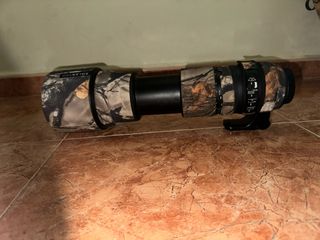 Teleobjetivo Sigma 150-600mm para montura Canon. - Diseñado para fotografía de naturaleza y vida salvaje. - Incluye funda protectora con camuflaje.