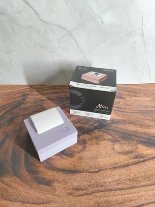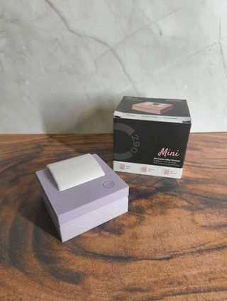 Pequeña impresora portátil, ideal para llevar contigo. Su diseño compacto la hace muy práctica. - Color morado y blanco. - Incluye rollo de papel.