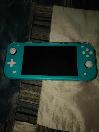 Nintendo Switch Lite azul con funda, cargador y juego Pokémon leyendas arceus.