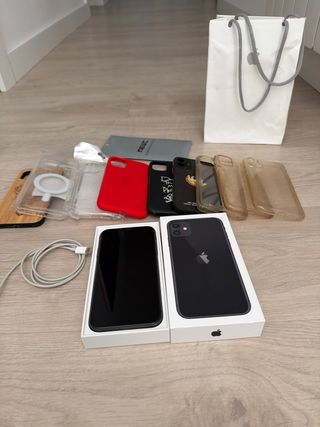 Teléfono móvil iPhone 11 en color negro y con 128 GB de almacenamiento. - Incluye cable cargador original - Se entrega en su caja original. -9 fundas -protector de cristal nuevo a estrenar. SE ENTREGA EN PERSONA.