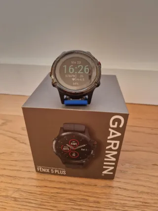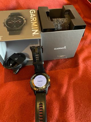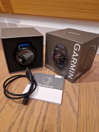 Reloj deportivo Garmin Fenix 5 Plus Sapphire con correa azul y bizel de zafiro. Incluye caja original, instrucciones y cable de carga. - Métricas para multitud de deportes. - Garmin Pay. - Spotify.