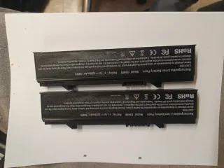 Dos baterías recargables de Li-ion para portátil. 10€ la unidad - Modelo: E5400 - Voltaje: 11.1V - Capacidad: 5200mAh / 58Wh - Incluye advertencias de seguridad y manejo.