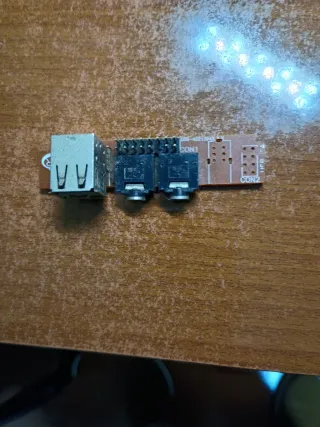 Placa conector USB y dos conectores de audio. - Un puerto USB. - Dos conectores jack de 3.5mm.