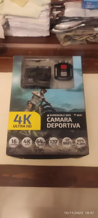 Producto nuevo a estrenar. Camara deportiva sumergible con 64 gb y wifi 4k ultra hd y 16 megapixels, tiene 170 grados de abertura, con dos pantallas y un sin fin de accesorios 24 cuadros por segundo, precio 40 euros. Y camara deportiva acuatica wifi 4 k ultra hd con 64 gb y 30 cuadros por segundo, con una pantalla y un sin fin de accesorios, tiene 170 grados de apertura, precio 26 euros. Para que elijas la que te guste. Kalobi