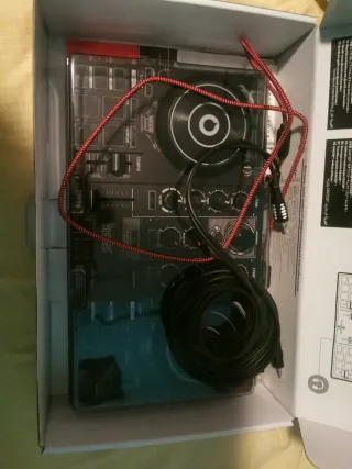 Controladora DJ Hercules T7 en color negro. Diseñada para mezclar música con dos platos. - Dos platos de control. - Múltiples pads de colores. - Controles de mezcla y ecualización. Se entrega con su funda de transporte original de Hercules y dos vinilos dorados (serie limitada) originales de la marca. Ademas, tambien se incluye deckshaver. En si caja original. Apenas se ha usado 3 horas en casa. Fue un auto-regalo al que no doy uso. No esta en garantia.