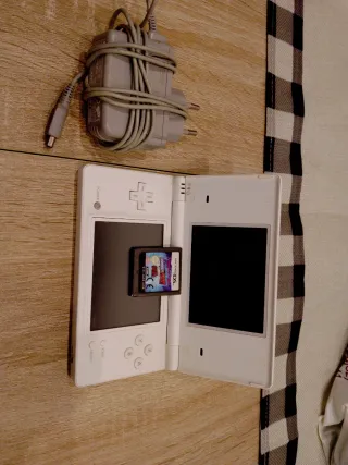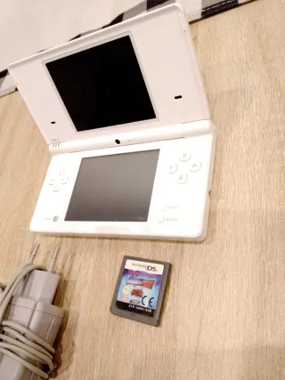 Consola portátil Nintendo DS en color blanco, ideal para llevar tus juegos a todas partes. Incluye su cargador original y un cartucho de juego. - Consola plegable. - Pantallas táctil y superior. - Botones de control y cruceta. - Ranura para cartuchos de juego. - Cargador de corriente.